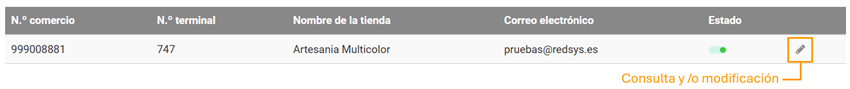Para acceder a los detalles de una tienda, deberás hacer clic en el icono del lápiz a la izquierda de la entrada en los resultados de la búsqueda.