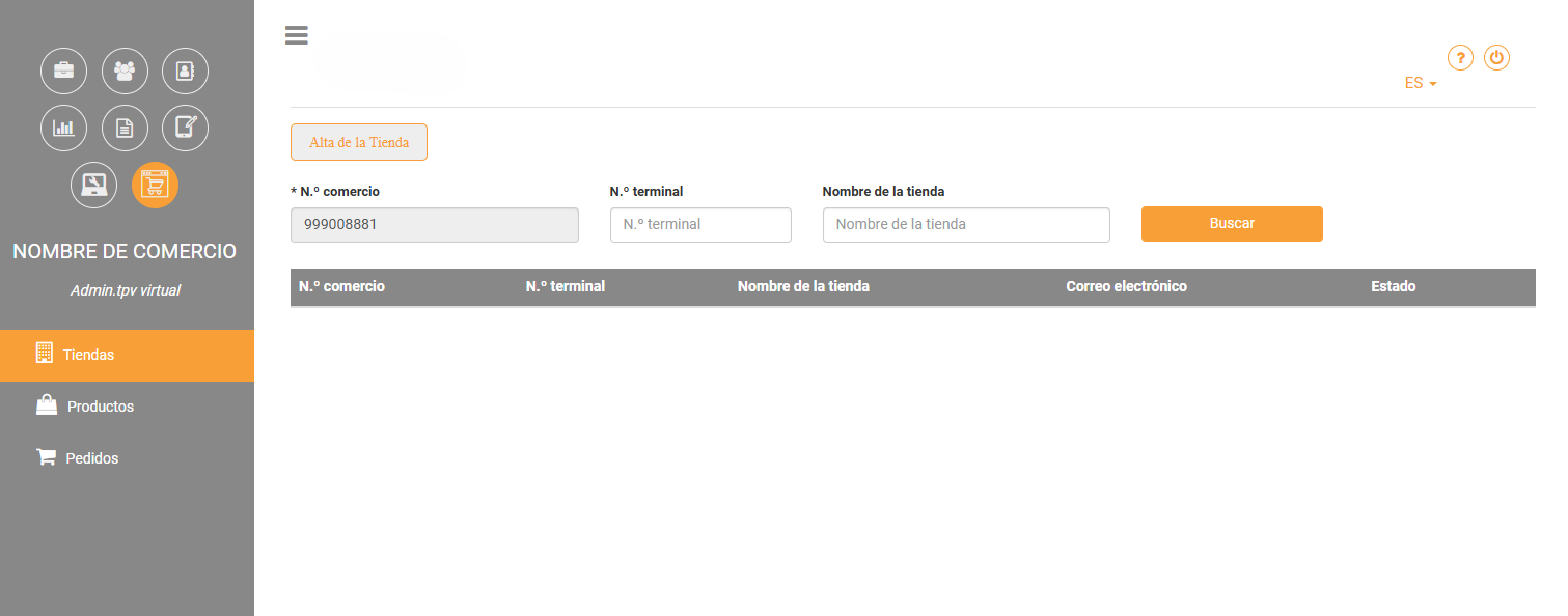 Al acceder, la primera pantalla que verás será el apartado de gestión de tiendas virtuales. En esta sección, podrás:
