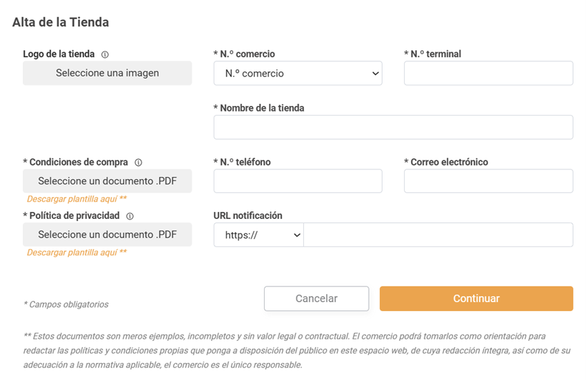 Alta de tienda virtual