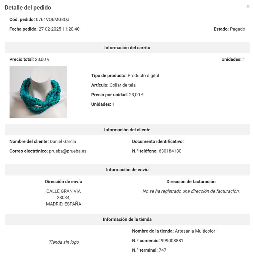 Este servicio, además, te permite gestionar el stock, las ventas y la información de tus clientes directamente desde el Portal de Administración del TPV Virtual. Así podrás acceder rápidamente a los detalles de cada órden y realizar los envíos que fueran necesarios sin necesidad de tener que desplegar un backoffice o gestor de envíos y clientes.